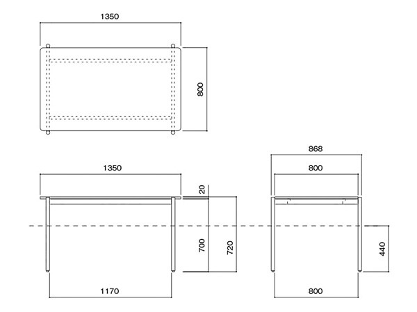スチール脚ならではのスリムなシルエット。シャープでモダンな印象ですが、丸脚と角を丸く仕上げた天板により親しみやすさも併せ持っています。天板はウォールナット突板、ブラック(木目あり)、ナチュラルの3タイプ展開。コンパクトに設置していただける幅135cmです。