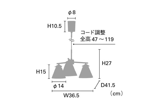 表面にストライプ状の凹凸をあしらったベル型のガラスセードを3灯バランスよく配したペンダントライト。細いゴールドのアームとの取り合わせが、よりフェミニンな印象を引き立てます。長さの調節もでき、余分なコードはシーリングカップの中にすっきりと収納できます。