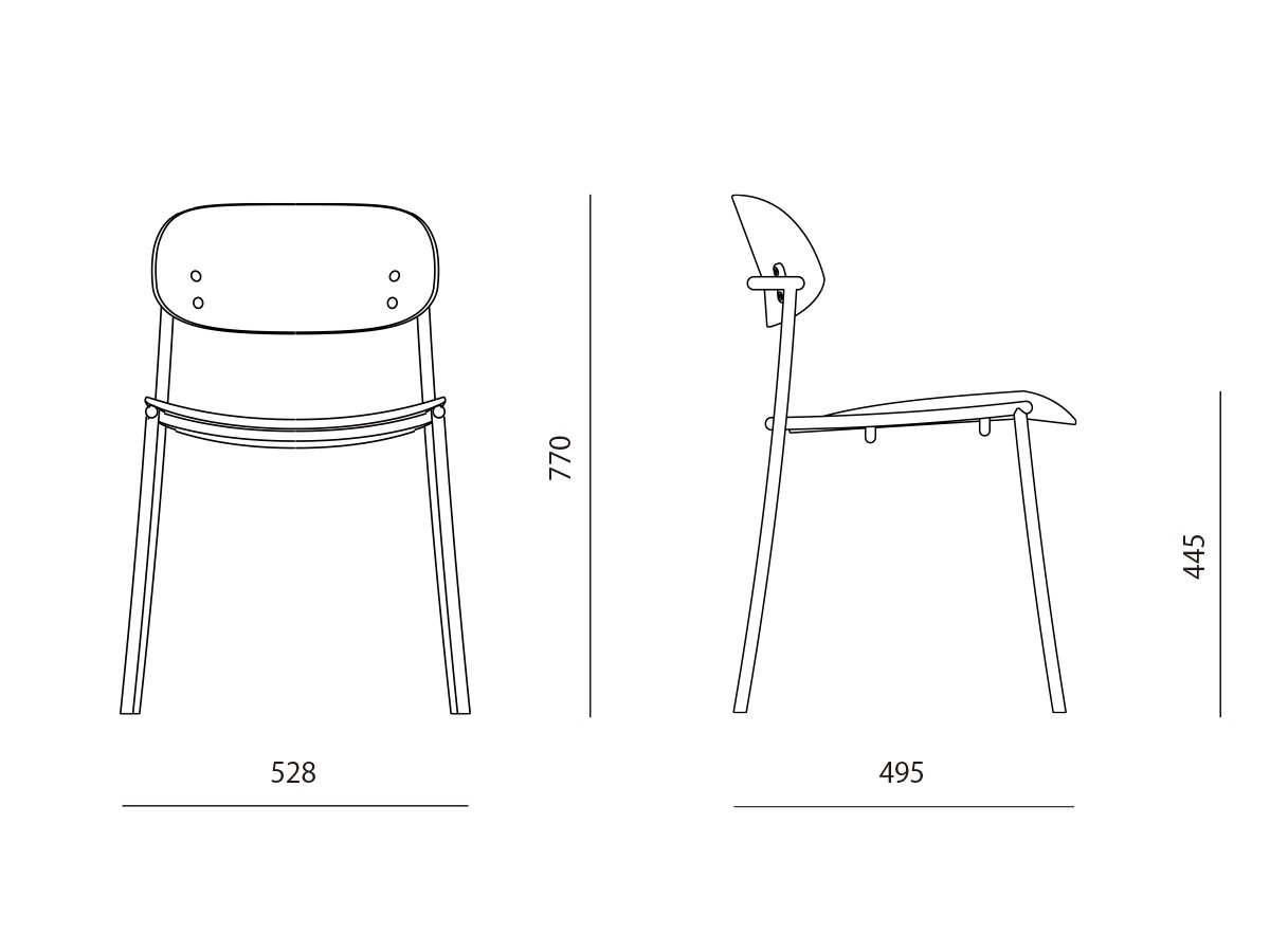 「異なる文化を融合させる」というステラワークスの哲学そのままに、北欧とアジアのデザインを融合したチェアです。全体の輪郭は柔らかな印象を与えますが、座面と背もたれの体をあずける部分はシャープなカーブを描いています。細長いフレームは、アジア(香港)でよく使われている竹で組んだだけの足場からヒントを得ています。しなやかな竹の足場と同じように、チェアのフレームも軽やかで有機的な構造をなしており、ゆるくカーブするチューブが軽く触れあって重なる仕組みになっています。住空間から公共の空間まで、人々が集まって食事をしながら楽しめる場を想定してつくられました。スタッキング(重ね置き)も可能です。