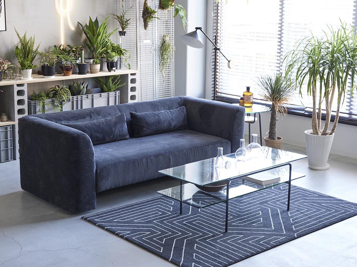 スリムなスチールフレームに強化ガラスを組み合わせた、シンプルなフォルムのコーヒーテーブル。開放感のあるデザインが空間に圧迫感を与えず、モダンからナチュラルまで、さまざまなインテリアスタイルに自然と溶け込みます。