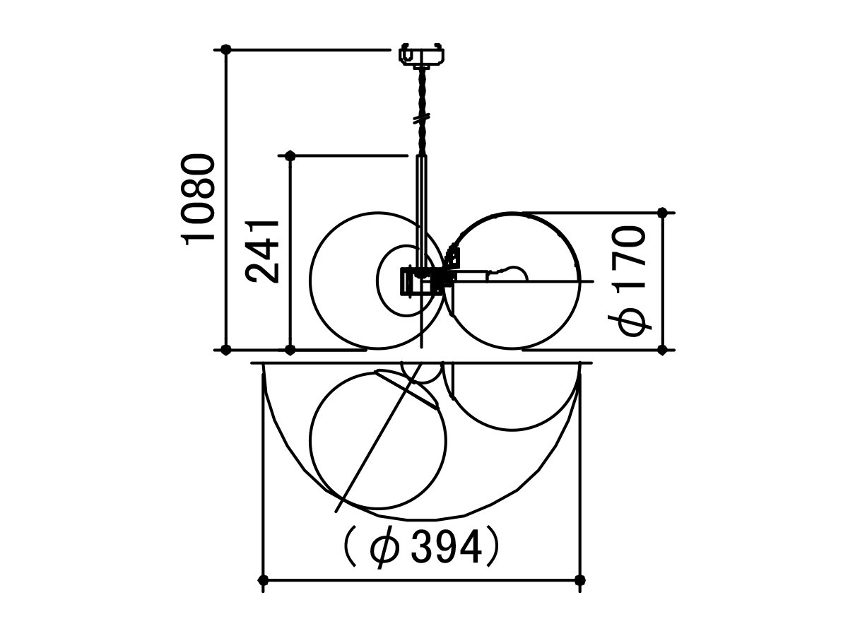 ※ コード加工は、全長表記より10cm単位でご指定が可能です。コード加工をご希望の場合は、天井から照明本体の下端までの寸法を【全長〇〇cm】として、ご注文時の備考欄にてご指定ください。コードを短くする場合、安全面からコード長は30cm以上でご設定ください。シェードのサイズ(高さ)は寸法図をご確認ください。