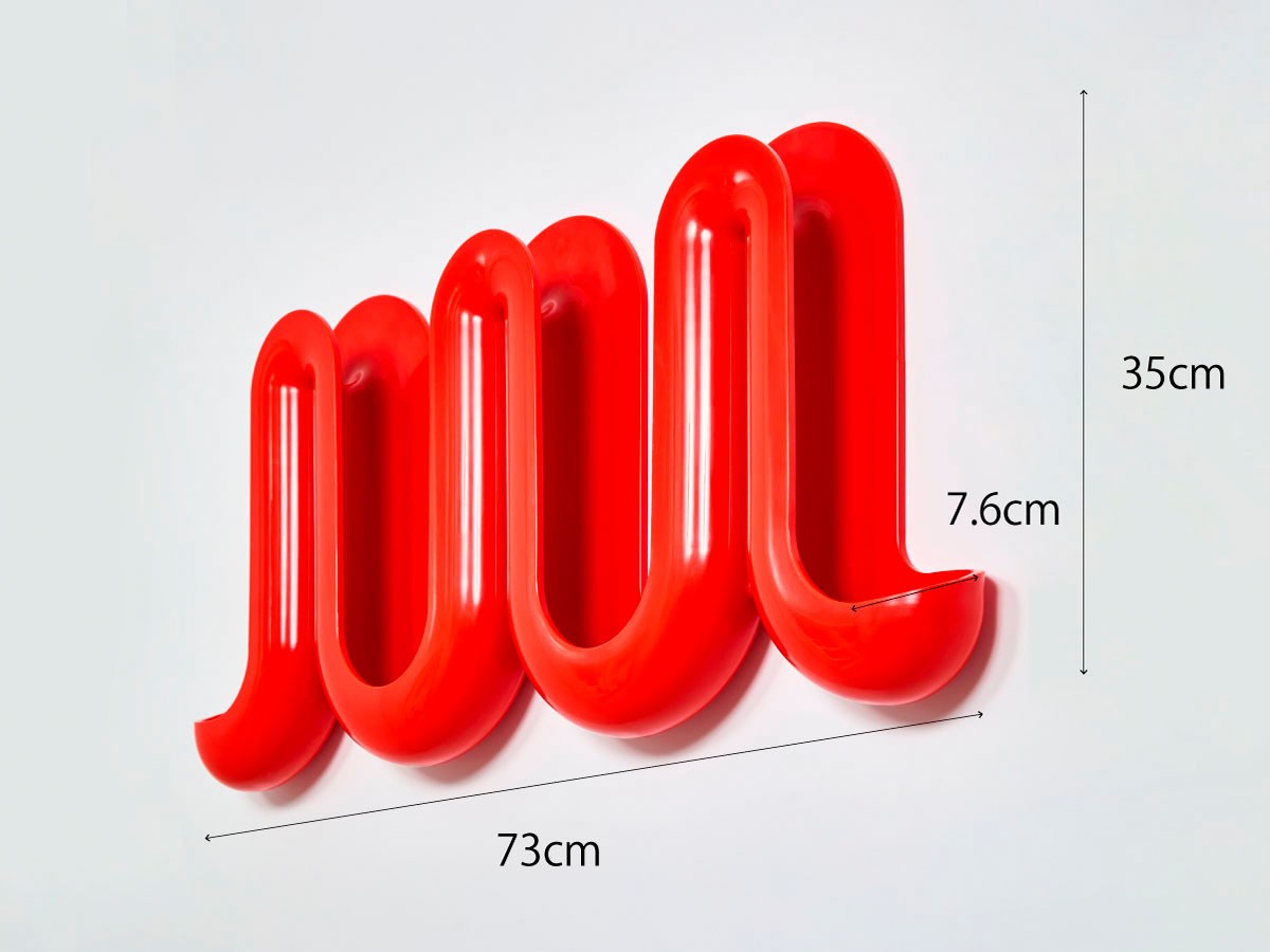 外出、帰宅時の動線をスムーズにするために設計されたウォールシェルフ。コートやマフラーを掛け、鍵や財布を入れることで、外出に必要なアイテムをひとまとめに収納できます。サーフィンを愛するデザイナー、アンナ・ドーソンが手掛けた遊び心ある彫刻的なフォルムは、海の波を思わせるうねる曲線が特徴で、高い機能性と美しい造形を兼ね備えています。