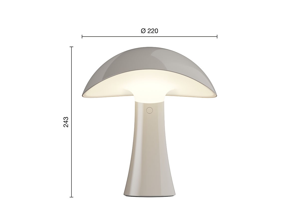 国際的に活躍するシンガポール出身のデザイナー、ガブリエル・タンが手掛けたポータブルライト。大きな帽子のようなうねる曲線から着想を得たデザインは、自然界の造形を想起させ、彫刻的な美しさを感じさせます。卓上を直接照らすだけでなく、反射光が間接照明として周囲をやさしく包み込みます。下面にはディフューザーが装着され、眩しさのないグレアフリーの光を届けます。