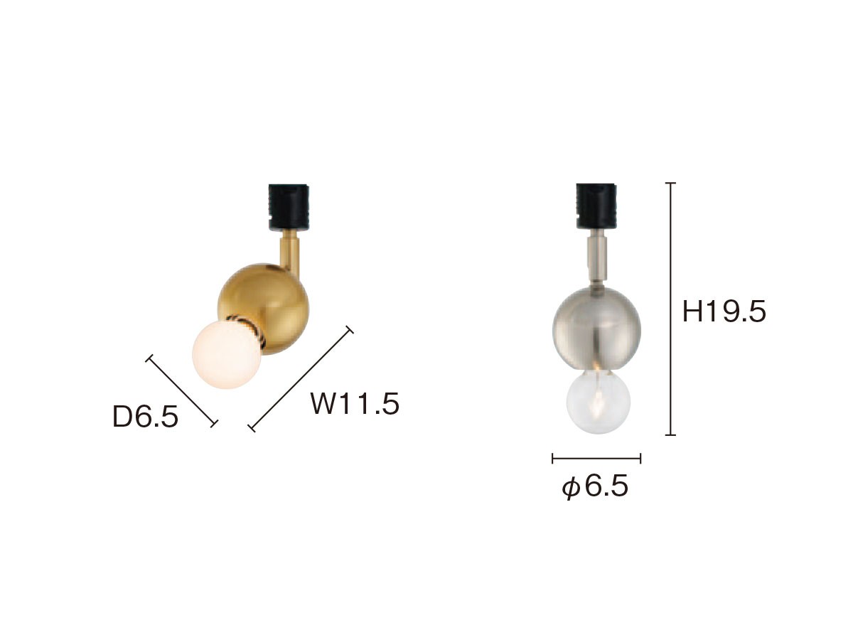 球体が連なるコロンとした愛らしいフォルムが、さりげないリズムと遊び心を演出するスポットライト。要素を極限まで削ぎ落としたデザインは、天井をすっきり見せ、複数並べても圧迫感を与えません。電球の光を受けて丸いソケットも輝きを放ち、光の粒が宙に浮かぶような印象をもたらします。