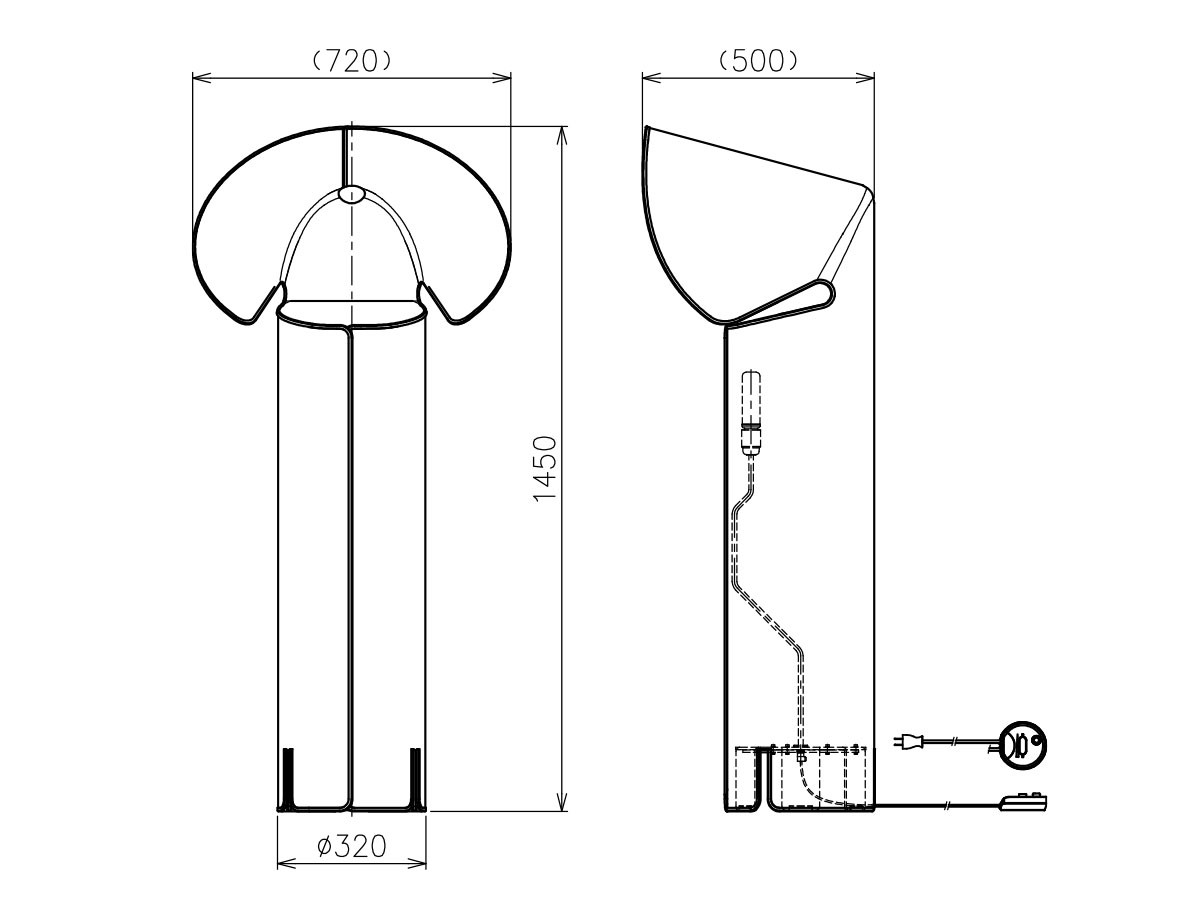 20世紀のイタリアデザインを代表する建築家兼デザイナー、Mario Bellini(マリオ・ベリーニ)が1969年に手掛けたフロアライト。磨き上げたアルミシートをカットし、円筒状に巻いただけという大胆で象徴的な構造を持ち、折り紙のように自立するシンプルなフォルムの内部に光源が収められています。