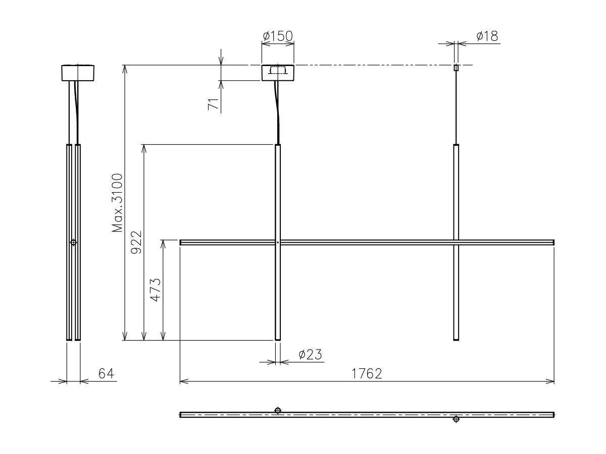 ※ 上記は照明本体のサイズです。