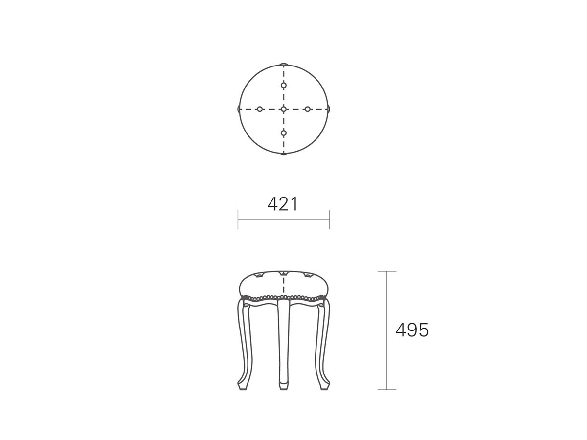 1968年発表の「ベルサイユ」シリーズに用いられていたリビングテーブルの脚部デザインを活かし、ロココ様式の優雅さを受け継ぎながら、スツールとして再構成。座面にはボタン締めと鋲を施し、クラシカルで上質な佇まいに仕上げています。