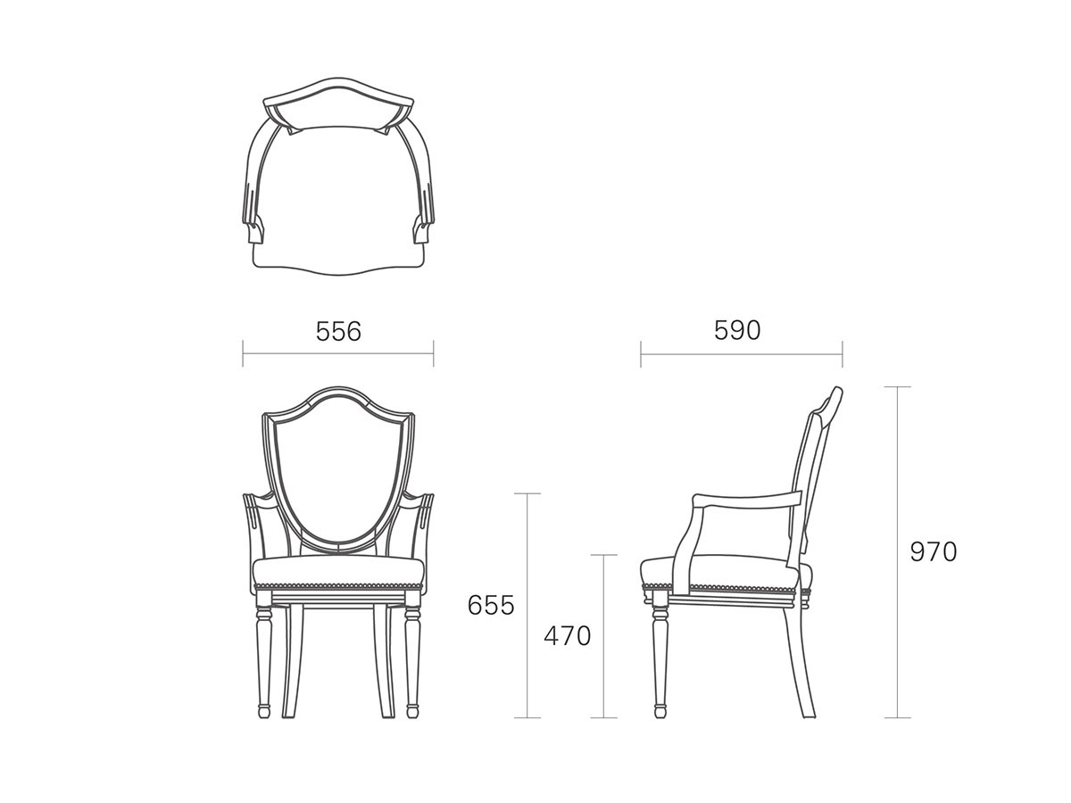 18世紀後半にイギリスで流行したヘップルホワイト様式をモチーフとした、盾形の背もたれが印象的なデザインです。復刻にあたっては、肘と座面の高さを高くし、奥行きを広くすることで、座り心地を向上させています。