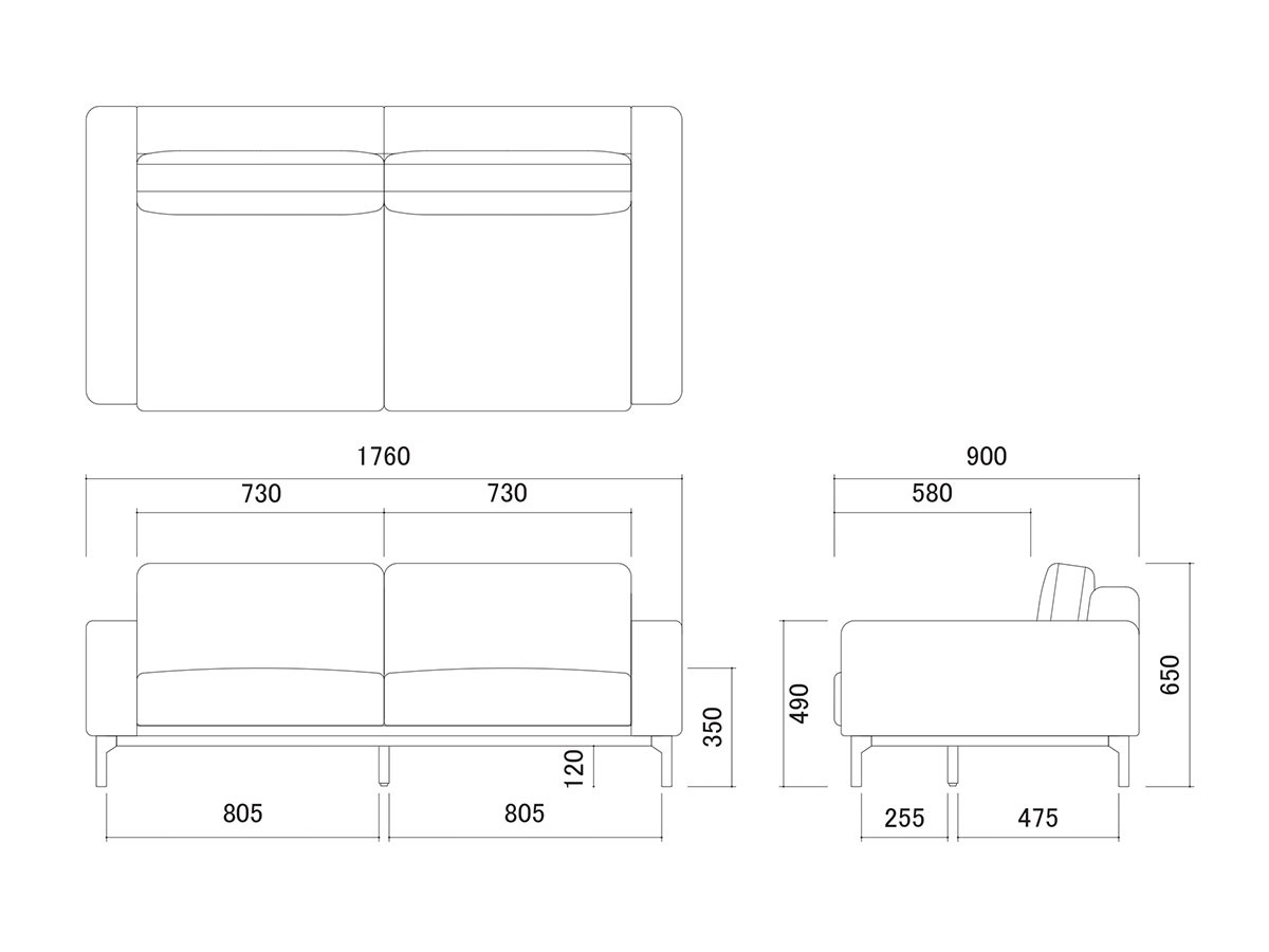 背クッション:幅73cm