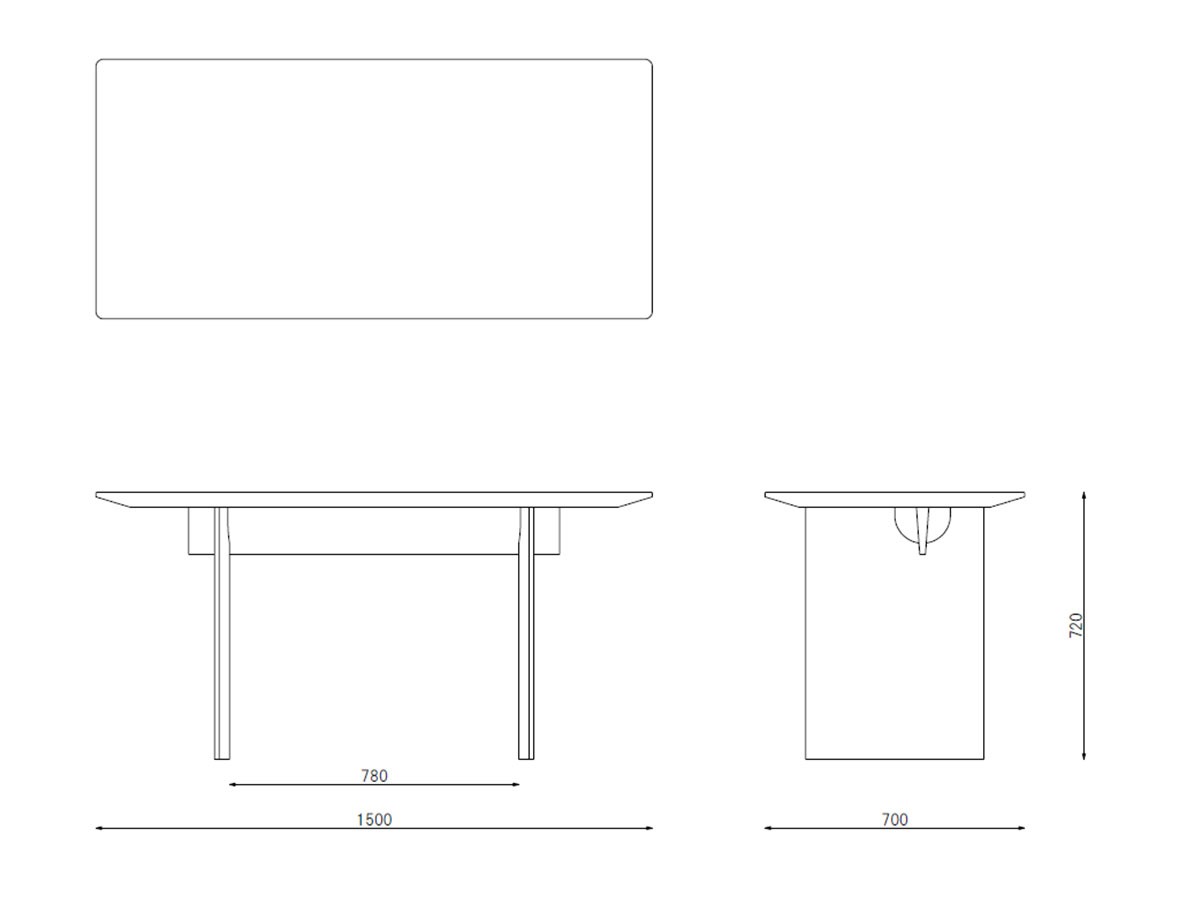 軽さと重さを感じさせるそれぞれの要素のバランスが美しい、木の枝を想起させるデスク。同シリーズのダイニングテーブルの建築的なデザインを継承し、よりコンパクトなフォルムへと落とし込んでいます。プロポーションや余白を緻密に計算し、幕板の配置を見直すことで足元に心地良いゆとりを確保しています。