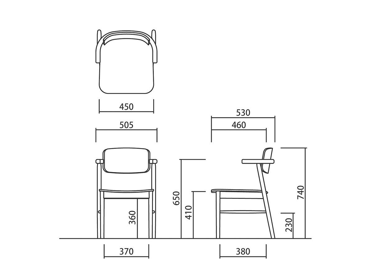 ヌーク ダイニングチェア ハーフアーム 板座