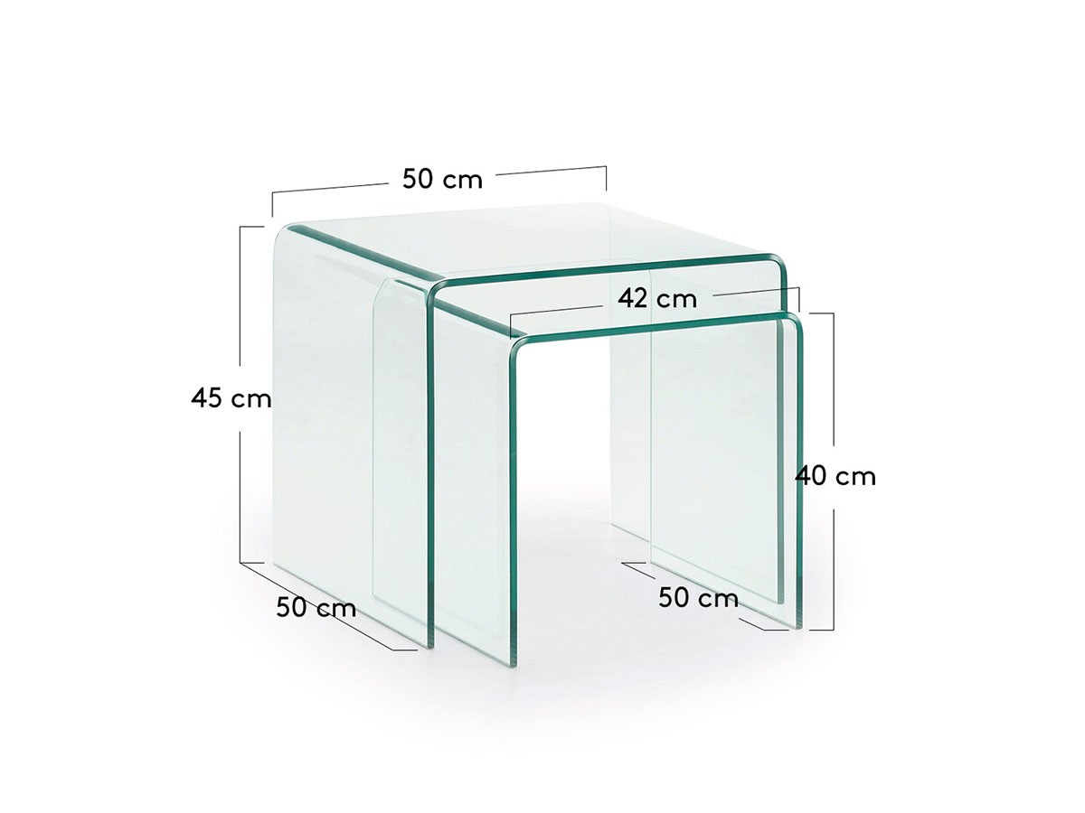全面強化ガラスを使用したネストテーブル。ミニマルなフォルムとクリアガラスの組み合わせが、洗練されたモダンな印象をもたらします。クリアなテーブルは視線を遮りにくく、空間にすっと溶け込み、広がりを感じさせます。