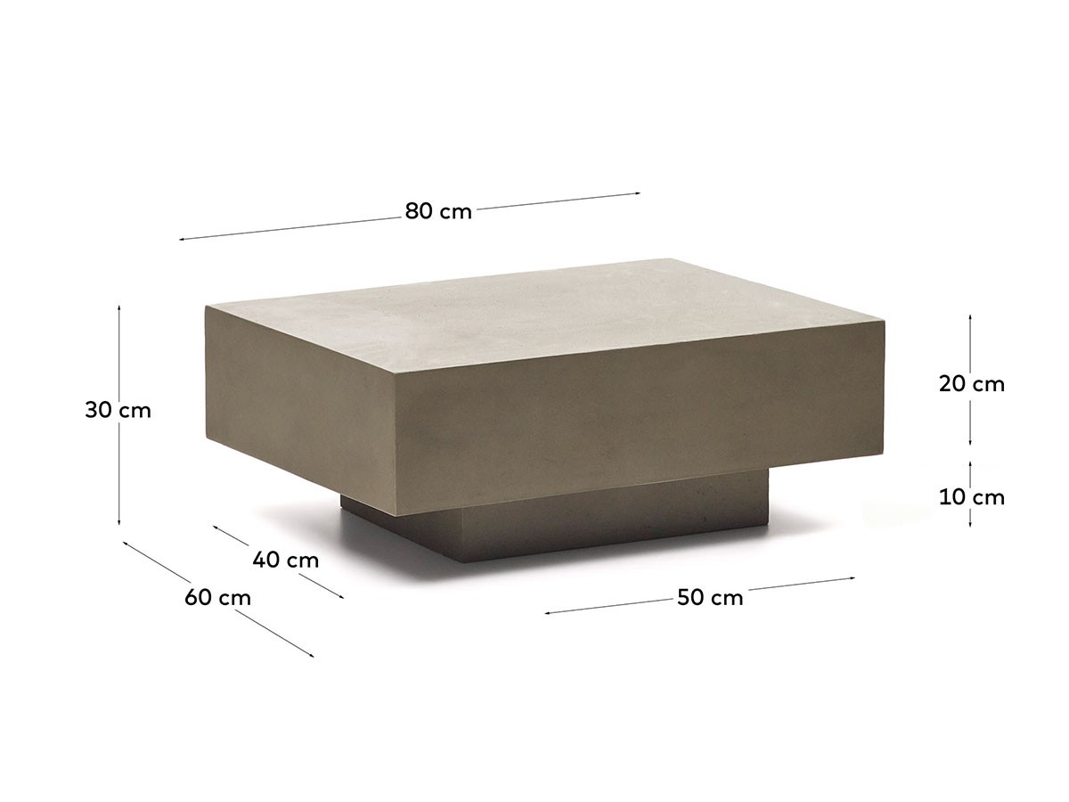 ミニマルでソリッドなフォルムが存在感を放つ、セメント製のコーヒーテーブル。セメントならではの質感が空間に重厚感を添えます。庭先やテラスなど、屋外でも使用可能で、洗練されたモダンなアウトドアリビングを演出します。