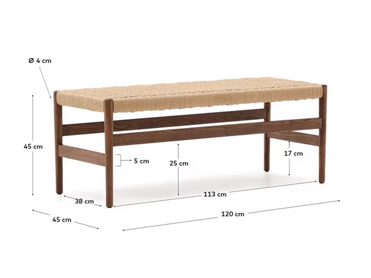 オーク無垢材のフレームにペーパーロープの座面を組み合わせたベンチ。自然素材ならではの温かみと手仕事による繊細な表情が魅力で、ナチュラルで伝統的なデザインが空間に上質な雰囲気をもたらします。座面は手編みのペーパーロープで仕上げており、ほどよい弾力と柔らかさで座り心地も快適です。