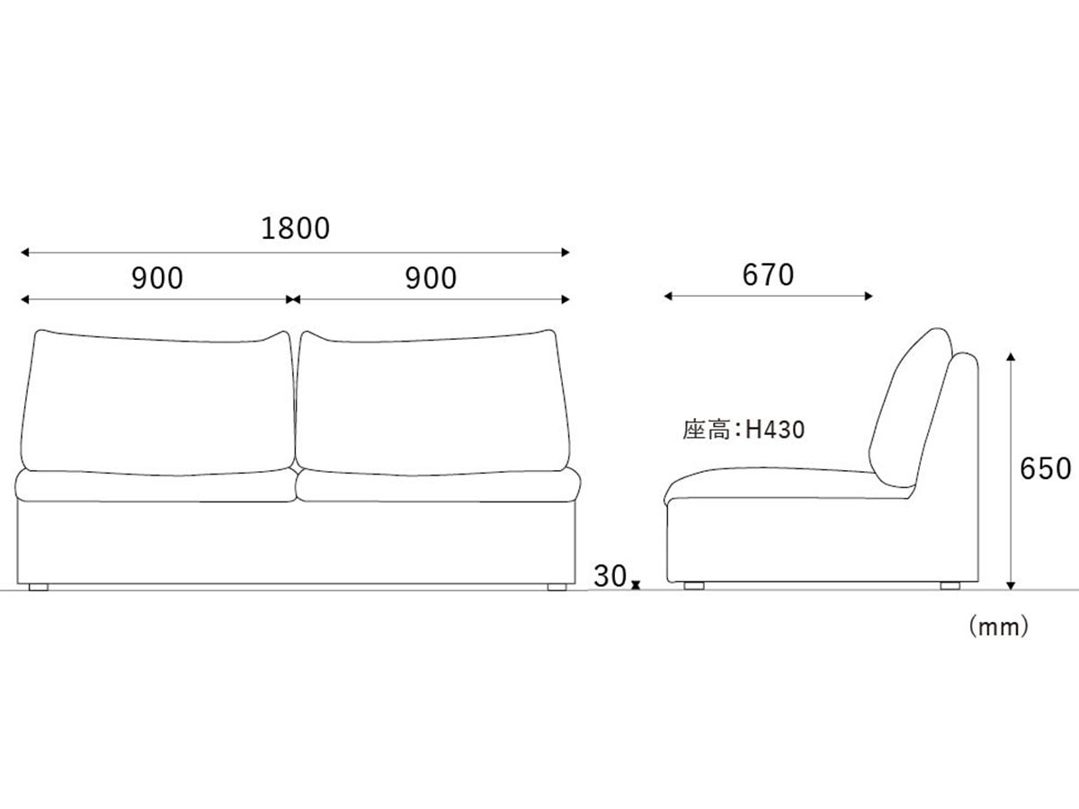 あぐらもかけるゆったりとした奥行きを備えた2.5人掛けソファ。フェザーによる柔らかさを感じつつも、身体をしっかり受け止める座り心地です。コーナーソファやシェーズロングなど、5タイプのラインナップを組み合わせられるユニット式ソファのため、間取りやライフスタイルに合わせた自由なレイアウトが可能です。