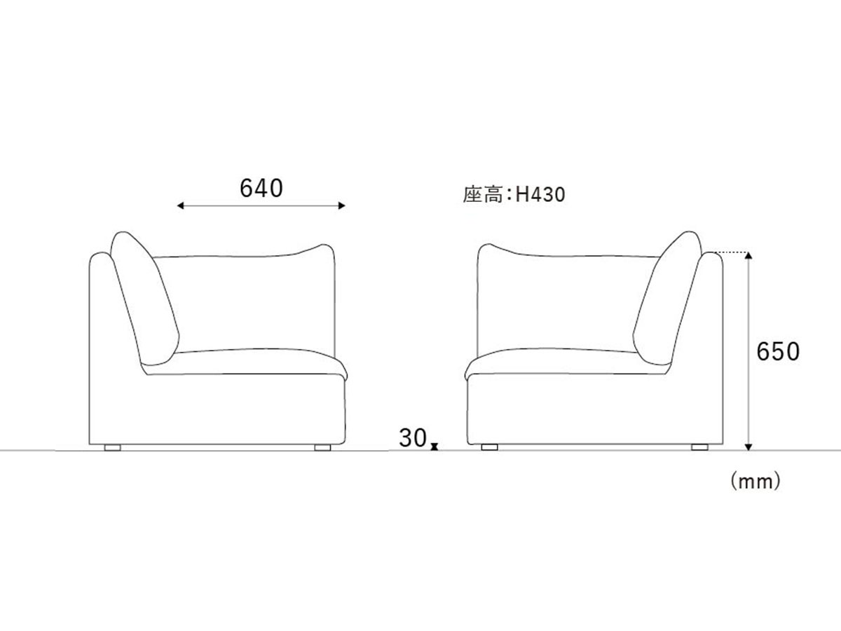 あぐらもかけるゆったりとした奥行きを備えたコーナーソファ。フェザーによる柔らかさを感じつつも、身体をしっかり受け止める座り心地です。2.5人掛けソファやシェーズロングなど、5タイプのラインナップを組み合わせられるユニット式ソファのため、間取りやライフスタイルに合わせた自由なレイアウトが可能です。
