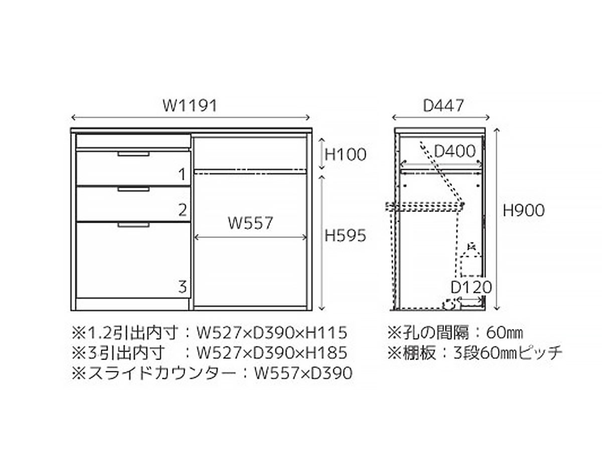 引出し:3杯(フルオープンレール式)