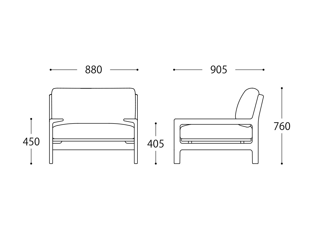 造形美と掛け心地を追求したラウンジチェア。肘や脚、フレームなど細部までこだわったラインが生む、心地良い手触りと美しいフォルムが魅力です。内向きの肘とそれを上下から包み込むような背と座が、おおらかな印象を与えます。肘は幅があるため眼鏡やスマートフォンなどの小物を置くことができます。