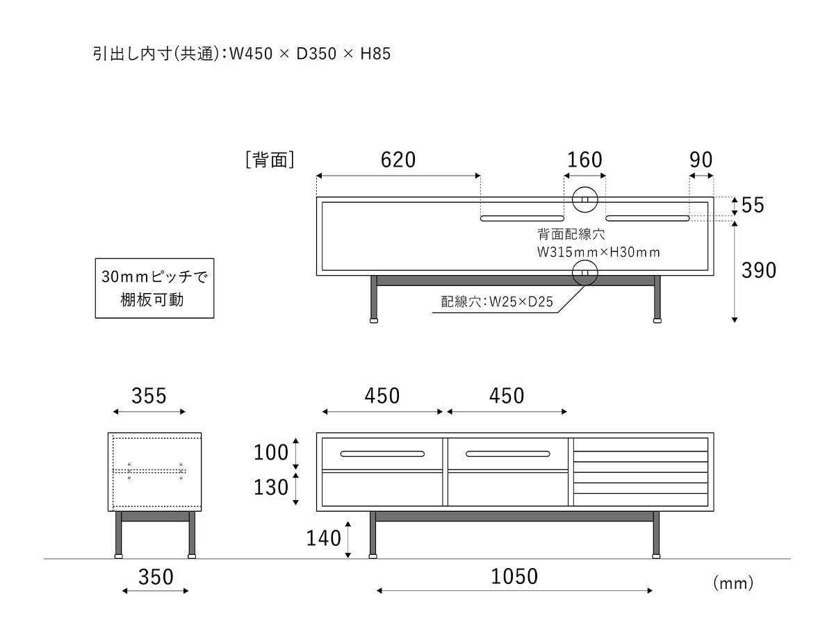 引出し2杯(スライドレール仕様)