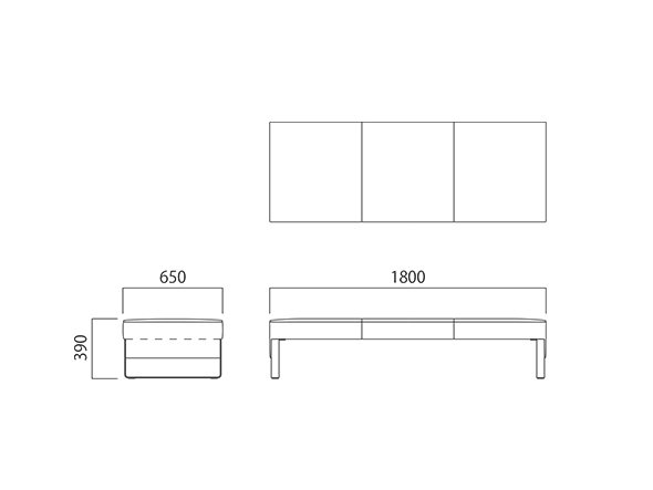 スクエアでコンパクトなモジュールをした3人掛けベンチ。同シリーズの13形状あるバリエーションの組み合わせにより、様々な空間に使いやすいデザインとなっています。