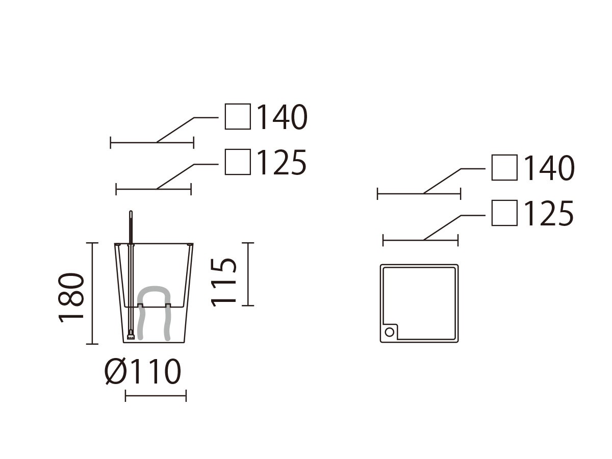 外鉢、ライナー(内鉢)、底面灌水システム、専用クレイ(土)がセットになっています。ライナーは取り外せる仕様のため、観葉植物のお手入れや移動の際にも便利です。