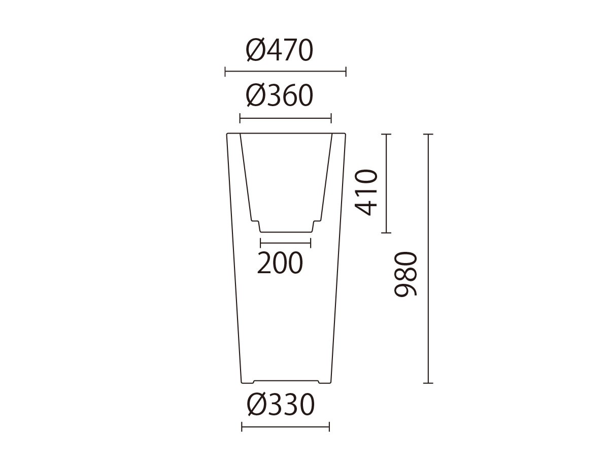高いフォーカルポイントが植物をより一層引き立てる、高さ98cmの丸形プランター。複数並べるとオブジェのような存在感で空間を彩ります。高度な成型技術で作られているため衝撃に強くて軽量。耐紫外線にも優れ、使用環境に配慮した作りになっています。底穴あけ加工をすれば、底穴からプランター内に転倒防止の重石を入れることも可能です。